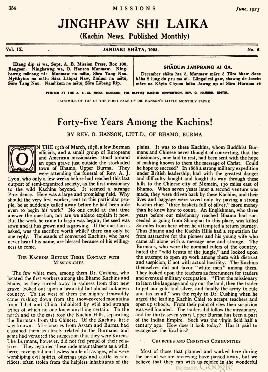 Rev Dr. Ola Hanson A Labau Sumla Ni